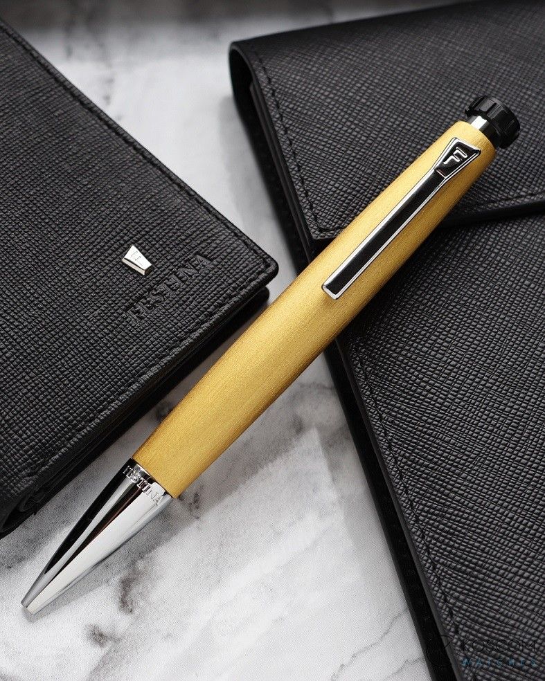 Guľôčkové pero CHRONO BIKE značky Festina spája žltú výraznú textúru s jemnými chrómovými kovovými akcentami a kombinuje športový s luxusným vzhľadom.