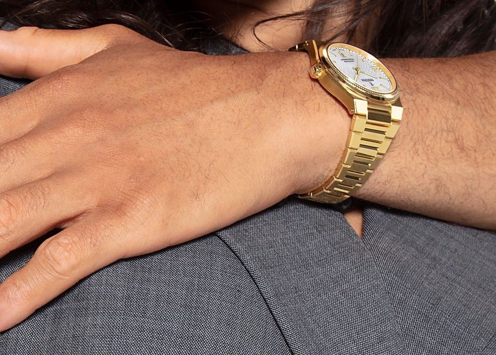 Klasické zlaté pánske náramkové hodinky FESTINA 20057/1 SWISS MADE (F20057/1)